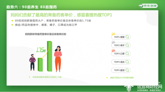 而在药品的购买上,80后妈妈成为了囤药大户,该群体的客单价是总体客单价的1.75倍,想必是一人购齐了家庭所需。感冒、嗓子、口罩,成为了在病症与药品类相关热搜的前三甲,呼吸道疾病仍是困扰国民的首要常见病。