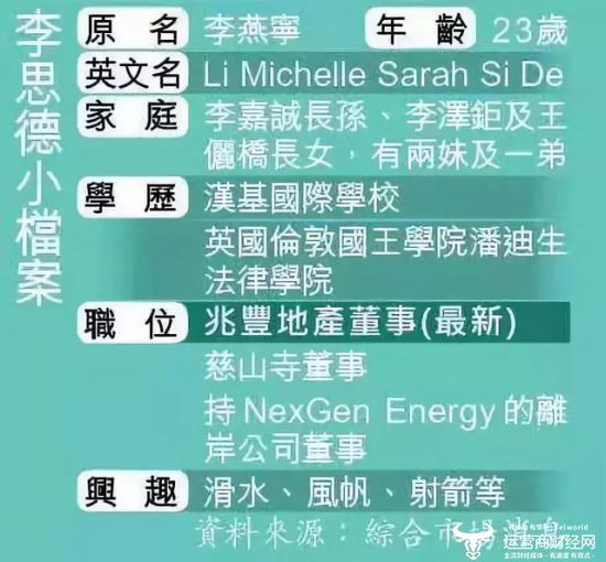 作为李嘉诚的的大孙子,李思德23岁毕业之后,也就是在最近几天,被李嘉诚安排在李嘉诚私人持有的公司兆丰地产董事。