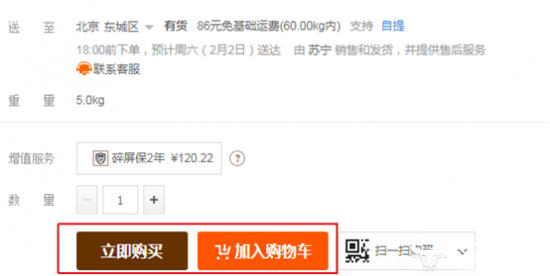 4、点击“加入购物车”或“立即购买”;