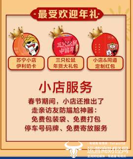 春节走亲访友,在小店还可以享受一系列的免费附加服务:免费包装袋、免费打包、停车号码牌、免费寄放等。