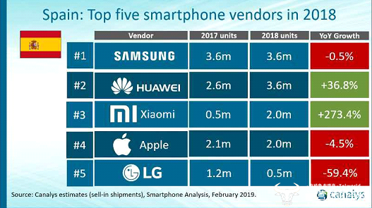 其中在西班牙市场,小米同比增长273.4%,已经跻身西班牙市场前三。