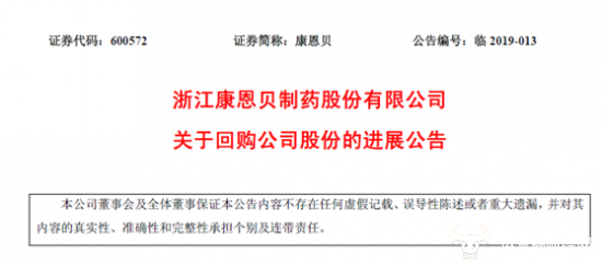 运营商财经网讯 浙江康恩贝制药股份有限公司于2018年9月25日召开2018年第一次临时股东大会审议通过了《关于回购公司股份的预案》,并于2018年10月11日披露了《关于回购公司股份的报告书》,本次回购股份资金总额不超过人民币3.20亿元,回购股份价格不超过人民币8元/股,回购期限为自股东大会审议通过回购方案之日起不超过6个月。