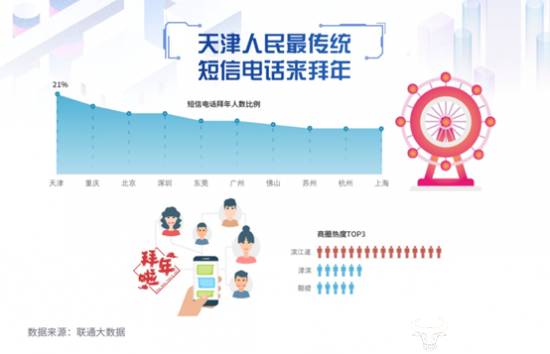 移动互联网使我们的拜年方式发生了改变,有了微信、QQ类社交软件,一条长语音、一段短视频便能寄托新春祝福。不过,仍有21%的天津人保留了较为传统的拜年方式,选择使用短信、电话来拜年。