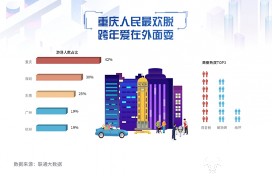 无夜景、不重庆,重庆本地人显然更深谙此道,在全家团圆的守岁夜,重庆有42%的人选择在外面度过,或是阖家聚餐、或是访友搓麻,堪称全国夜生活最热闹城市。