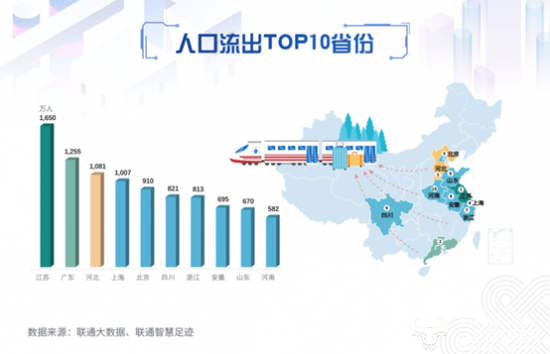 江苏地区在2月1日-7日间回乡流出人数全国最高,其次为广东、河北、上海、北京、四川、浙江、安徽、山东、河南。