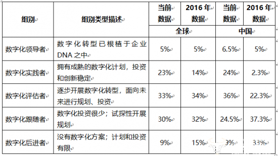 中国的情况有所不同。尽管仍有很多工作要做,但研究表明,中国企业正在行动——2016年,中国有33%的企业被列为数字化后进者,今天这个数字只有9%;而2016年中国仅有2.3%的企业被归类为数字化实践者,现在这个数字达到了24%。可以说,在数字化转型的很多方面,中国企业已经达到甚至超过了全球平均水平。