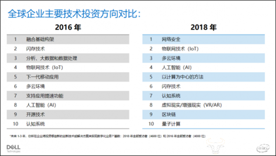 图表3:全球企业主要技术投资方向对比