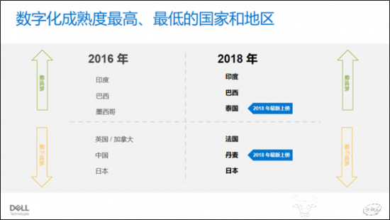 戴尔科技集团与英特尔、Vanson Bourne公司合作,对来自全球大中型企业的4600名决策者进行了调研,并对他们所在企业数字化转型的进展进行了评分。