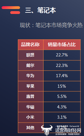 目前看来,联想笔记本在多个细分领域都是第一,而戴尔、惠普略逊一筹。不过新需求在不断产生,笔记本市场分化更加明显,究竟谁才能在跑道上坚持到最后成为最大赢家,还需要时间验证。