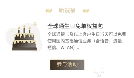 据了解,这项全球通会员生日优惠礼服务是移动推出的“全球通焕新优享”活动中的优惠。但是毕竟生日只有一天,要是能每天都有好礼遇,自然是更好啦!全球通也想到了,除了生日优惠,,用户购机有高达1000元的优惠,。全球通银卡及以上客户每年还可获得额外3至10天全球通专属国际漫游叠加包,享受免国际漫游费的权益; 3月31日前首次通过话费订购大包多天套餐,还可享受3人同行2人免单的优惠。