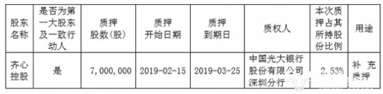 深圳齐心集团股份有限公司近日接到公司控股股东深圳市齐心控股有限公司通知,获悉齐心控股将其所持公司的部分股份办理补充质押,具体事项如下: