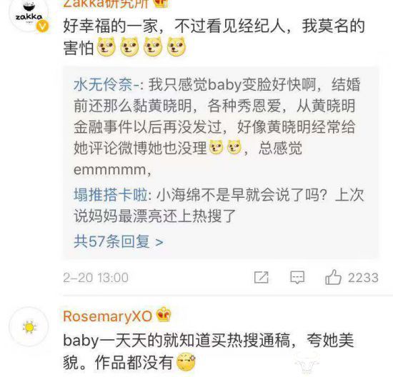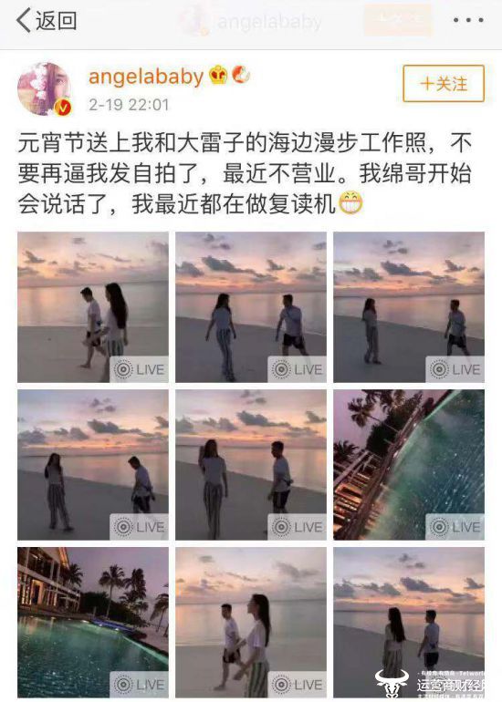 昨晚,baby在微博发了一组照片,然而这九张图的男主人公并不是黄晓明。有网友质疑,在元宵节的日子里,baby发了和经纪人的照片,却只字不提黄晓明,难道是已经“婚变”?