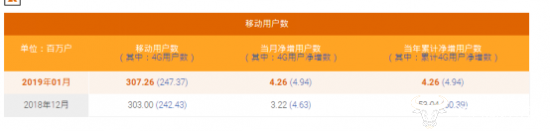 公告显示,中国电信移动用户数累计到达约3.07亿户,本月净增426万户,2019年全年累计净增426万户。其中,4G用户累计到达约2.47亿户,本月净增494万户,2019年全年累计净增494万户。