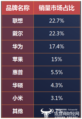 近日,运营商财经网发布了《2018年数码、PC、智能终端数据分析报告》(简称“报告”),分析了2018年一年来数码、PC、智能终端行业的运行情况。其中,在报告中运营商财经网根据2018年各大企业笔记本的销售情况可见,联想和戴尔的销售市场占比差距极其微小。