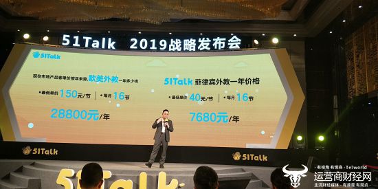 2月26日,中国在线英语教育品牌51Talk在京举办了以“More³”为主题的2019战略发布会。会上,51talk CEO黄佳佳称,在保证课程质量的情况下,51Talk将继续任用高性价的菲律宾外教,让在线英语教育更普惠。