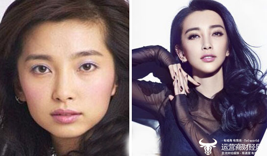 其实刚出道的时候,李冰冰是方脸,现在的下巴确实变尖了。