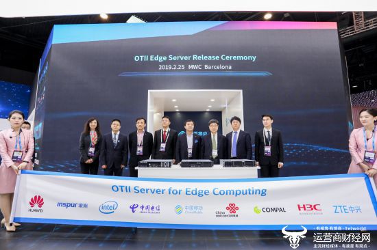 MWC 2019期间,中国移动联合中国电信、中国联通及产业链合作伙伴共同发布了基于最新一代Intel CPU(Cascade Lake)平台的OTII边缘定制服务器。来自三家运营商以及Intel、仁宝、浪潮、新华三、华为和中兴等合作伙伴的嘉宾出席发布仪式。