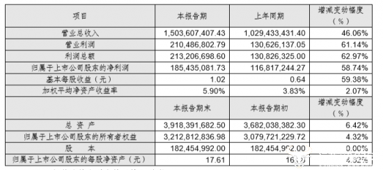 公告显示,2018年度力生制药实现营业总收入15.04亿元,比上年同期增长46.06%,主要原因是为本年度力生制药加大市场开发力度,完成销售收入优于预期所致;实现营业利润2.10亿元,比上年同期增长61.14% ;实现利润总额2.13亿元,比上年同期增长62.97%;实现归属于上市公司股东的净利润1.85亿元,比上年同期增长58.74%,主要原因是力生制药营业总收入增长,同时,受益于力生制药管理效率提高,成本费用得到有效管控,整体效益提升。