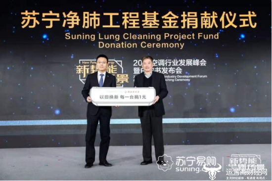 2019年起,慈善基金进入实施阶段。会上,净肺工程慈善基金捐赠仪式启动,苏宁公益基金会副理事长马康向广东省南山医学发展基金会副理事长顾士明捐赠了第一笔公益善款,并承诺后续苏宁在以旧换新与健康空调销售中,每台空调提取1元,注入专项基金。