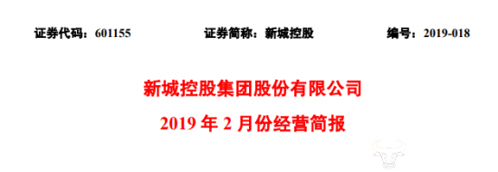 2019年3月4日,新城控股集团股份有限公司(以下简称“新城控股”)发布2019 年 2 月份经营数据公告。