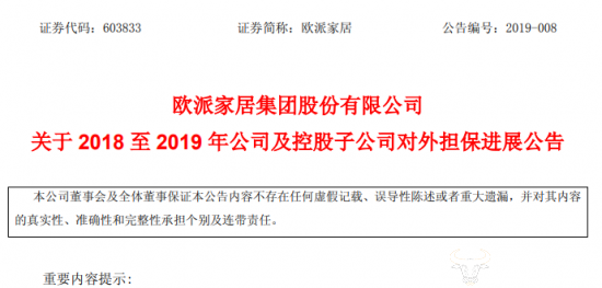 2019 年 3 月 5 日,欧派家居集团股份有限公司(以下简称“欧派家居”)发布关于 2018 至 2019 年公司及控股子公司对外担保进展公告。