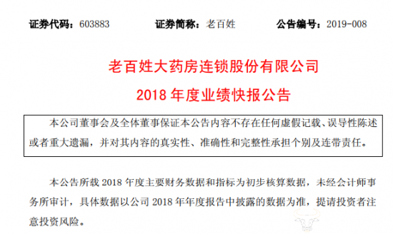 2019 年 3 月 5 日,老百姓大药房连锁股份有限公司(以下简称“老百姓大药房”)发布2018 年度业绩快报公告。