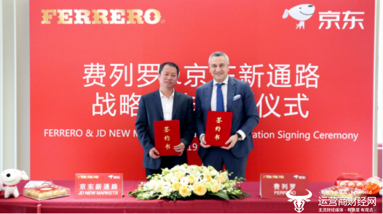 2019年3月6日,费列罗与京东新通路宣布达成战略合作,双方将在市场营销、消费者研究、渠道拓展及产品升级等领域深入合作。费列罗中国区总经理马如城(Mauro De Felip)与京东集团副总裁、京东零售子集团新通路事业部总裁郑宏彦等出席了战略合作协议签约仪式。