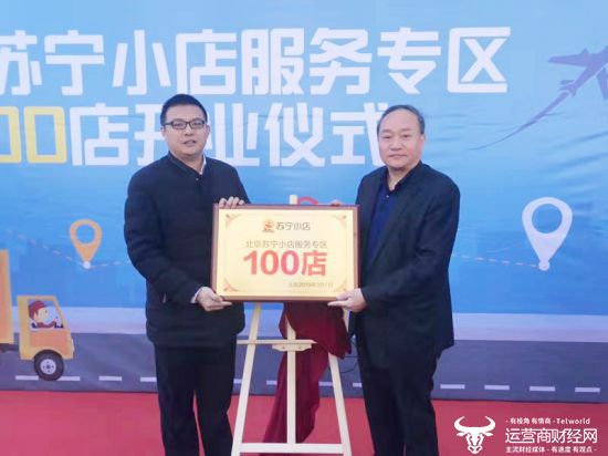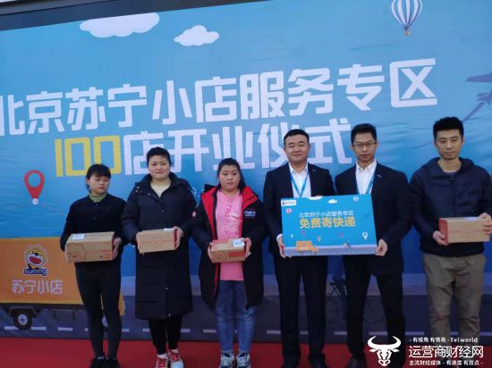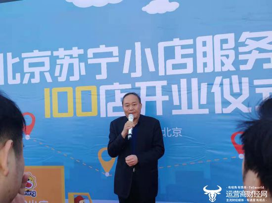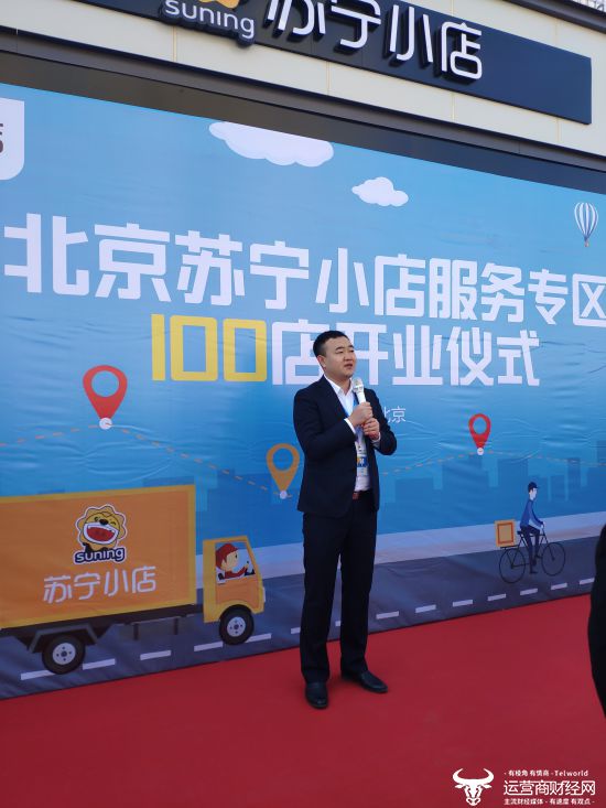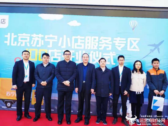 3月7日,北京苏宁小店服务专区100店开业仪式在通州正式拉开帷幕,北京市快递协会秘书长杨建 、北京苏宁易购总经理郝嘉、北京苏宁物流公司总经理胡潘共同出席仪式。