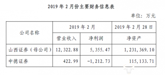 今日,山西证券股份有限公司发布了关于2019年2月份主要财务信息的公告。