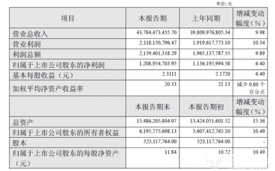 公告显示,2018年营业总收入约438亿元人民币,比上年同期增长了9.98%;净利润达21亿,同比增长10.34%;归属于上市公司股东的净利润12亿,较上年增幅6.4%。具体如下: