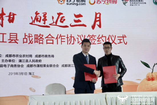 3月7日,2019蒲江丑柑节暨蒲江丑柑产销对接会于四川蒲江招商中心召开。会上,苏宁拼购代表邵建林、邱楠向现场来宾介绍了苏宁拼购发展情况及成功案例,尤其是“包山包湖包海”的介绍,引起了现场不少种植户的关注。在分享结束后,苏宁拼购与蒲江县签订了战略合作协议——第五座“拼基地”正式落地四川蒲江。