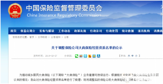 至于为何会进行调整,官方的原话是说"及时将符合条件且有意愿参与大病保险业务的保险公司纳入资质名单,将不再符合经营资质的保险公司调整出名单,推动大病保险制度平稳有序运行"。