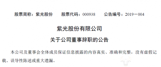2019 年 3 月 8 日,紫光股份有限公司发布关于公司董事辞职的公告。