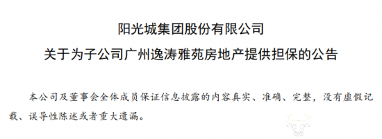 同时,阳光城以子公司广州市百耀欣光房地产有限公司100%股权提供质押,百耀欣光房地产名下部分项目土地提供抵押,阳光城对广州逸涛雅苑房地产该笔融资提供全额连带责任保证担保,广州逸涛雅苑房地产为阳光城提供反担保。