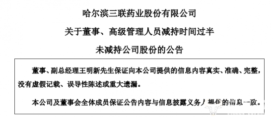 3月7日晚间,哈尔滨三联药业股份有限公司(以下简称“哈三联”)发布关于董事、高级管理人员减持时间过半未减持公司股份的公告。