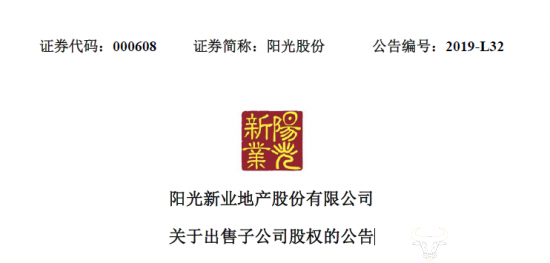 2019年3月8日,阳光新业地产股份有限公司(以下简称“阳光新业”)发布关于出售子公司股权的公告。