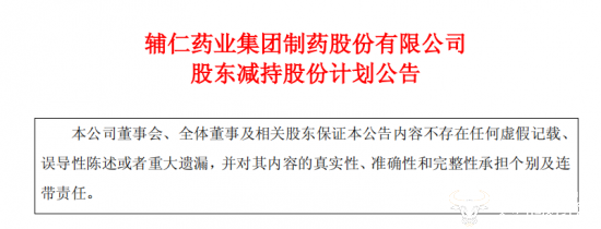 3月8日晚间,辅仁药业集团制药股份有限公司(以下简称“辅仁药业”)发布股东减持股份计划公告。