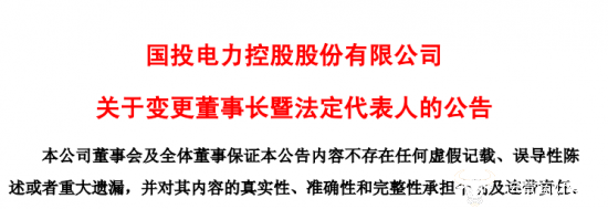 3月8日晚间,国投电力控股股份有限公司(以下简称“国投电力”)发布关于变更董事长暨法定代表人的公告。