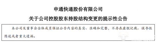 3月11日,申通快递股份有限公司(以下简称“申通快递”)发布关于公司控股股东持股结构变更的提示性公告。公告显示,阿里巴巴将投资46.6亿元入股申通快递控股股东公司。