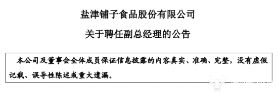 日前,盐津铺子食品股份有限公司(以下简称“盐津铺子”)发布关于聘任副总经理的公告。