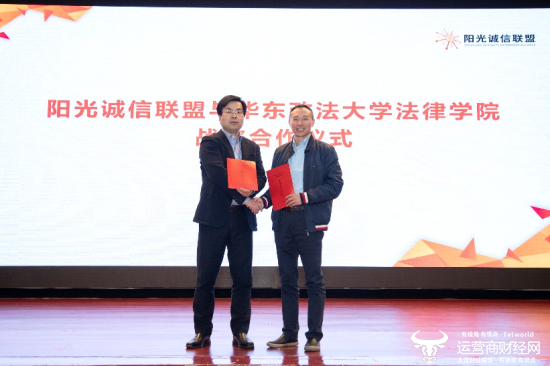 【华东政法大学法律学院副院长潘小军(左)与阳光诚信联盟理事会会长江卫华(右)】