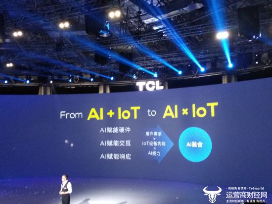 王成表示,自从2014年TCL双轮驱动后,经过38年的发展,全球累计服务用户已达9.6亿。而且,王成还表示,TCL的下一个赛场,将从AI+IOT变成AIxIOT,实现AI融合。