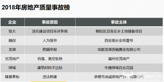 3月14日,运营商财经网举行了2019财经TMT行业315质量报告发布会,会上发布了多行业领域报告,其中房地产报告盘点了2018年因违法被处罚企业榜,榜单中出现了世茂地产的名字。