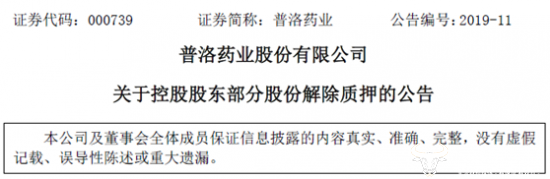 普洛药业股份有限公司近日接到控股股东横店集团控股有限公司发来的关于解除证券质押登记的函告,获悉横店集团将原于2017年4月12日质押给招商银行股份有限公司杭州保椒支行的1000万股我公司无限售流通股于2019年3月11日办理完成了解除质押手续。