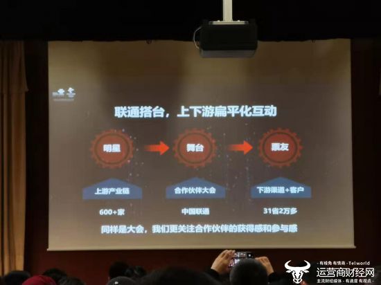 陈丰伟最后表示说中国联通将结合上游600多家产业链,在合作伙伴大会上聚合31省2万多下游渠道和客户,形成上下游扁平化互动,在这其中,中国联通充当桥梁纽带。他还表示,在大会上将展现更多的东西,这些只是餐前的小菜。