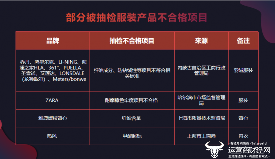 值得注意的是,这些不合格品牌大都是体育类品牌,但在做羽绒服装时明显对质量把控不是很严格。