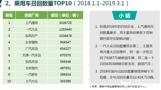 乘用车召回数量TOP10显示,2018年1月1日至2019年3月1日,东风日产进行了3次大召回,总计召回1203445辆汽车。作为知名车企,召回这么多到底置安全于何处?