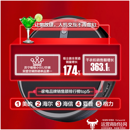 焕新节期间,零售云苏宁易购县镇店销售提升326.8%,覆盖超过1.4亿乡镇居民。成都、郑州、杭州、重庆、西安、沈阳、北京、天津、石家庄、武汉的县镇居民,购买力排名前十。零售云与美的空调头等舱战略显成效,美的成为小镇居民最喜欢的品牌。