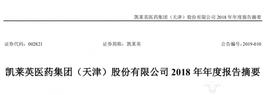 近日,凯莱英医药集团(天津)股份有限公司 (以下简称“凯莱英医药”)发布2018 年年度报告摘要。