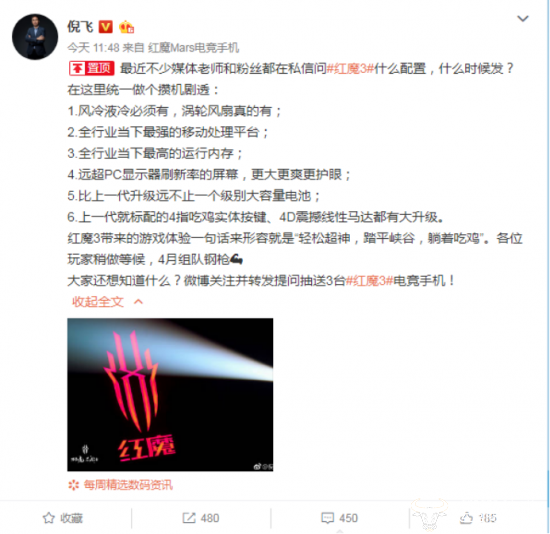 说到手机圈最大的变化,莫过于从发布会前的“遮遮掩掩”到如今的“自爆”。这不,今日努比亚智能手机总经理倪飞便在微博上开启了#红魔3#的攒机剧透。